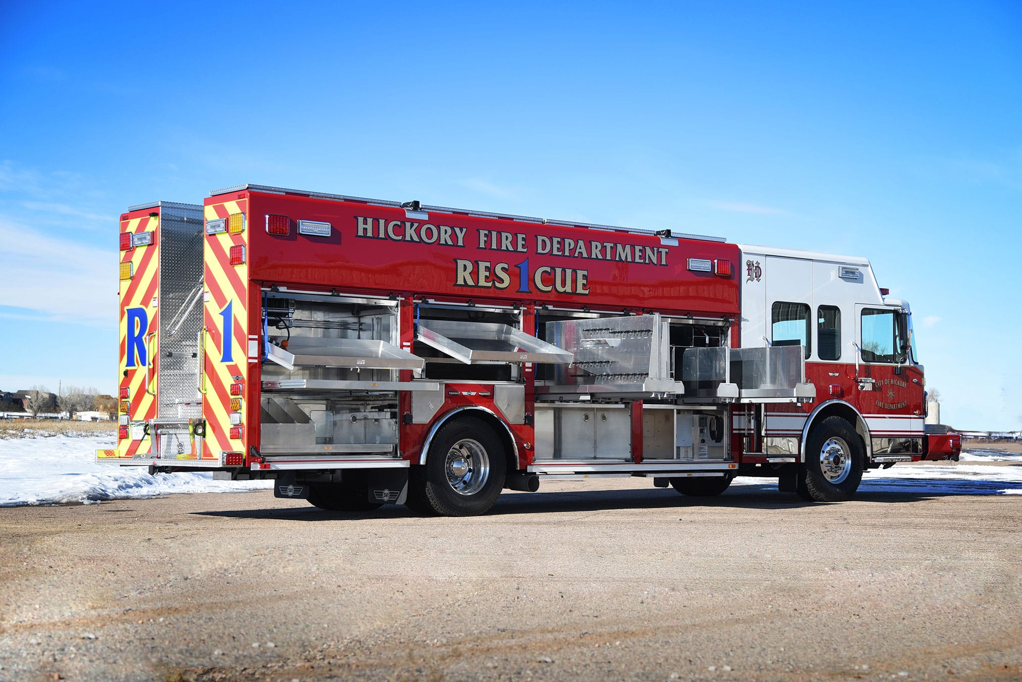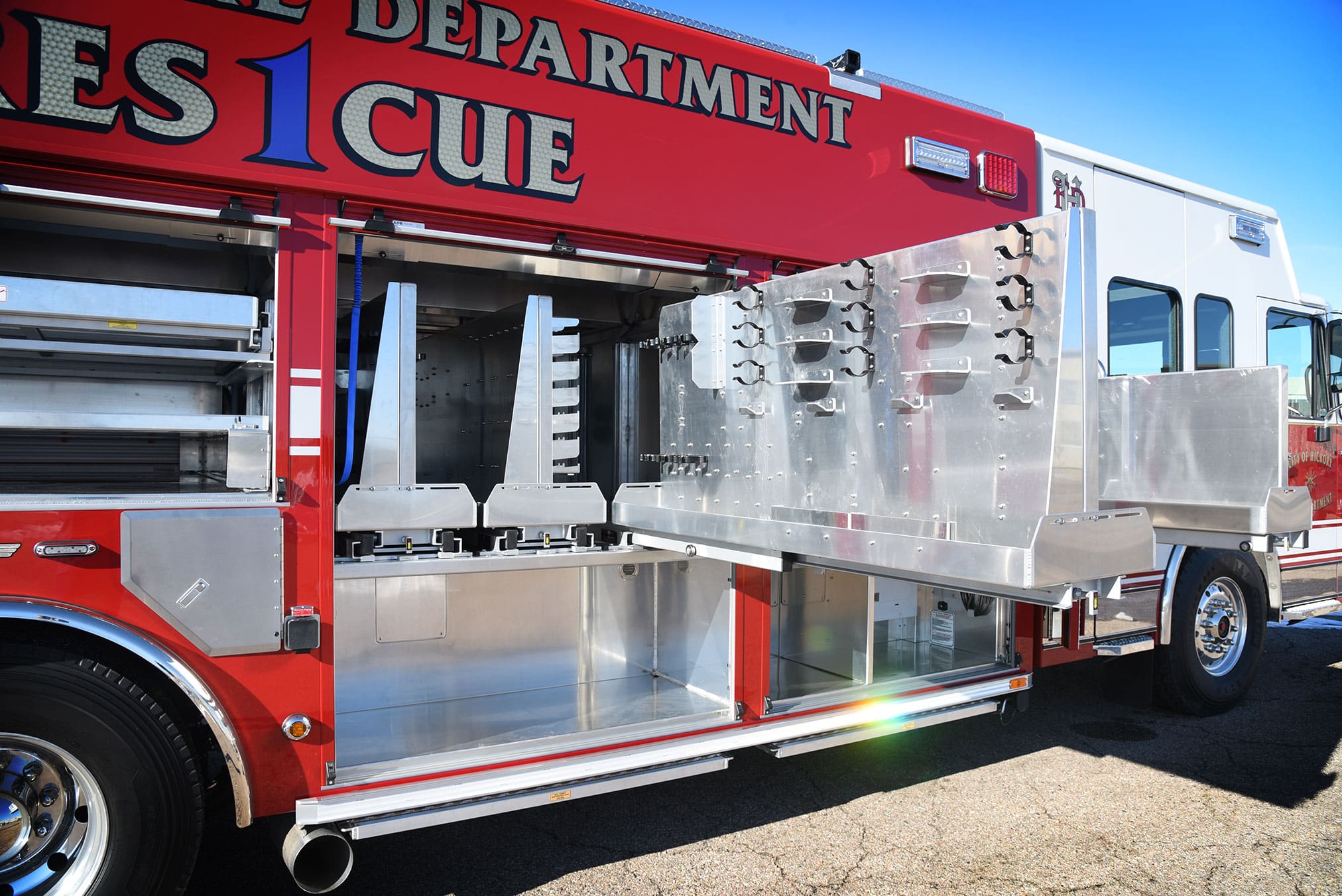 This Heavy Rescue comes with SlideMaster structural-steel slideout trays, a Audiovox Voyager heavy-duty rearview camera system, Warn 9,000 lb. 12-VDC electric winch, OnScene Solutions LED compartment/ground lighting and much more